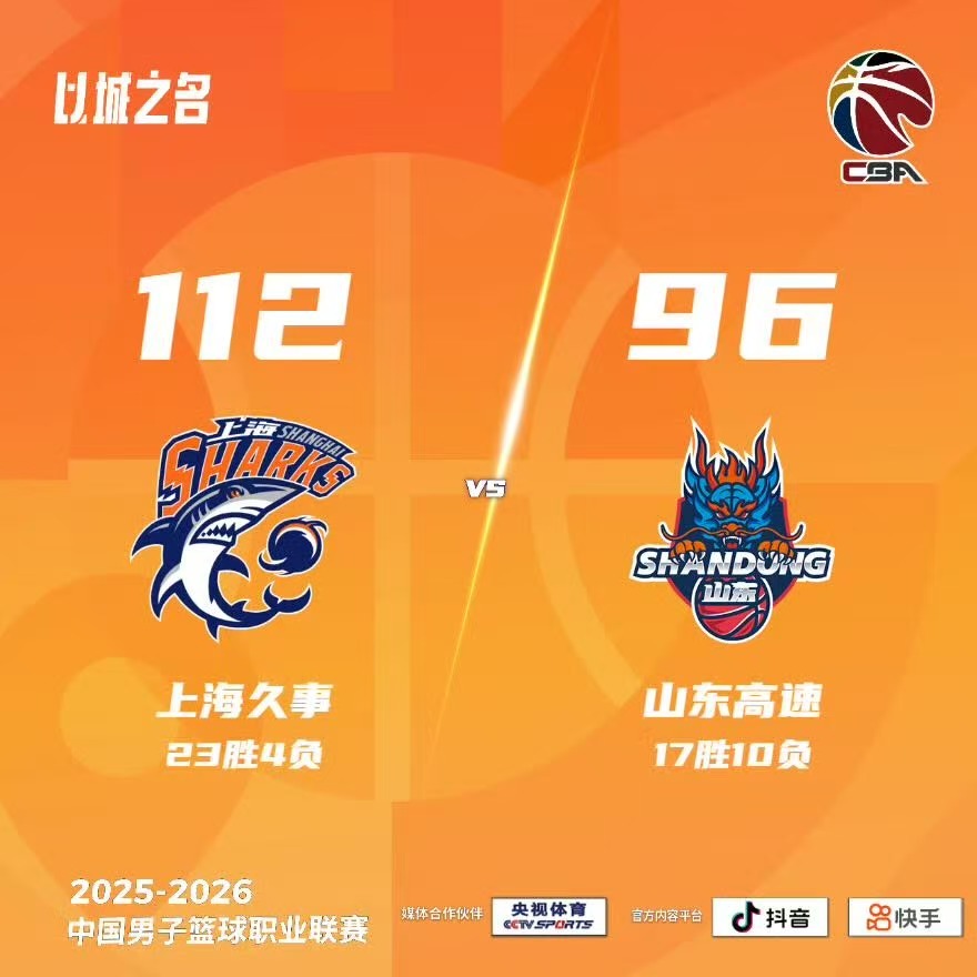 第四节,李添荣底角三分射中,陶汉林上篮到手回敬两分,王哲林中距离跳投射中,古德温、李添荣先后射中三分。暂停回来,李添荣手感火热连获5分,将分差再行扩大至两位数,王哲林强突上篮打进,古德温篮下顽固2+1打成,张镇麟内线连获4分。全场比赛终局,上海112比96山东,取得通例赛八连胜。目下,上海队以23胜4负的战绩位列CBA积分榜首位。