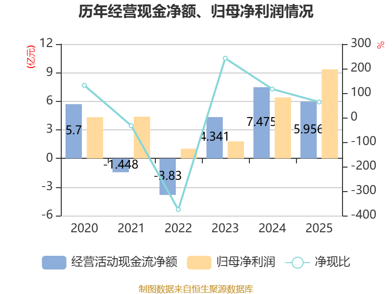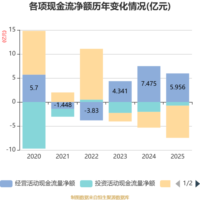 限度2025年,公司筹划行径现款流净额为5.96亿元,同比下落20.32%;筹资行径现款流净额-6.71亿元,同比减少3.42亿元;投资行径现款流净额-7598.19万元,上年同时为-2.06亿元。