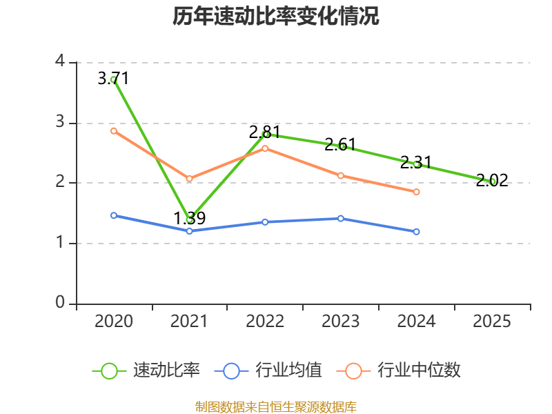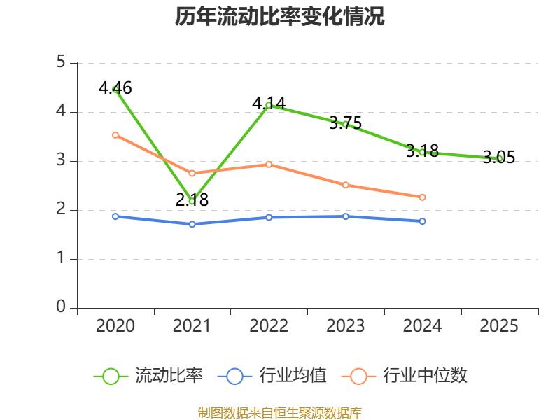 2025年,公司流动比率为3.05,速动比率为2.02。
