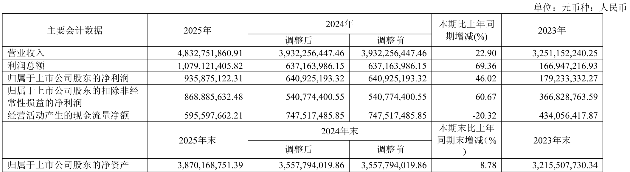 中证智能财讯说念通科技(688208)3月21日清楚2025年年度叙述。2025年,公司好意思满贸易总收入48.33亿元,同比增长22.90%;归母净利润9.36亿元,同比增长46.02%;扣非净利润8.69亿元,同比增长60.67%;筹划行径产生的现款流量净额为5.96亿元,同比下落20.32%;叙述期内,说念通科技基本每股收益为1.42元,加权平均净金钱收益率为25.96%。公司2025年度分派预案为:拟向整体推动每10股派现5元(含税)。