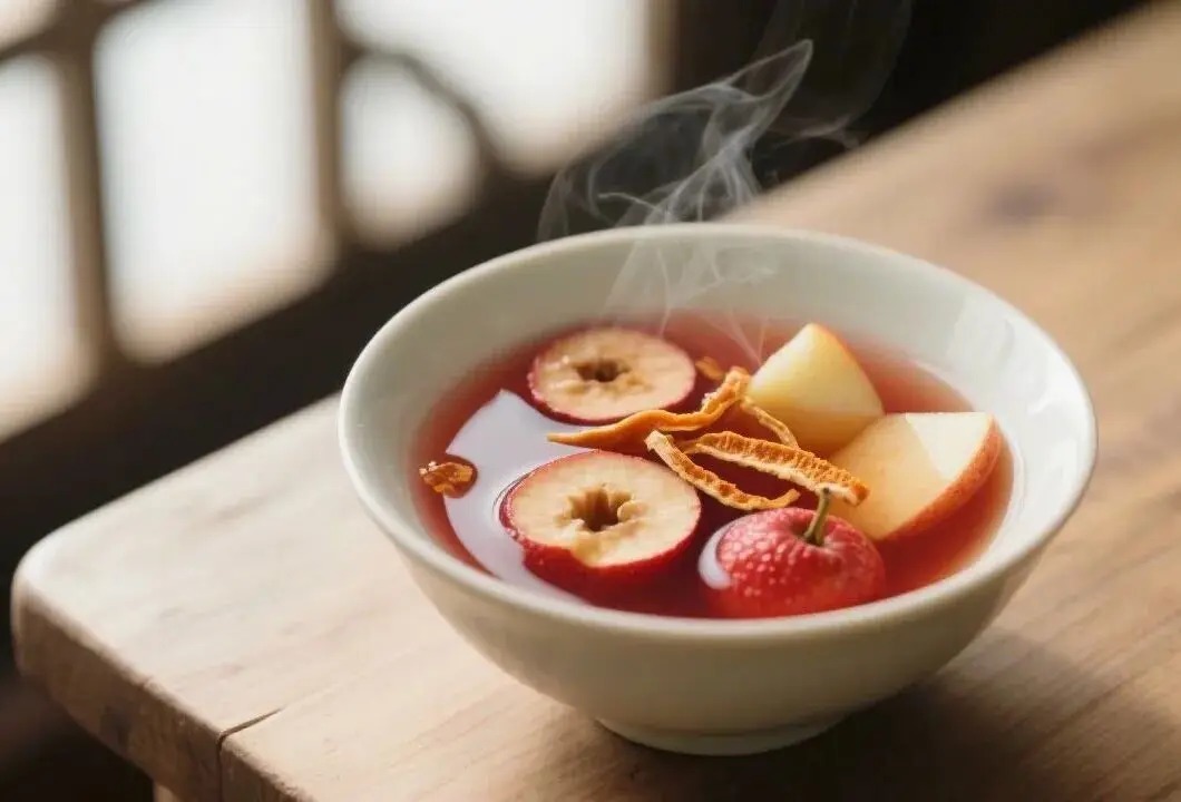 山楂最擅长消化肉食带来的浓重积滞,能把堵在胃里的东西给化解开;陈皮是理气健脾的好手,能把堵住的气机给顺开,趁便还能把潮湿烘干;苹果则像个和事佬,调处脾胃。这个搭配的精髓在一个“通”字,把脾胃的通谈计帐干净,那股子郁热当然就消释了。